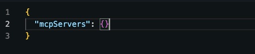 This is the MCP Client config - where we list our MCP Servers. You might already have an MCP Server defined if you followed my previous tutorial. Otherwise, you'll see an {}.