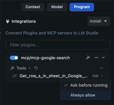 We can then ask a local model in LM Studio to fetch the data; the model will connect to the Google Sheet and fetch it on demand.
