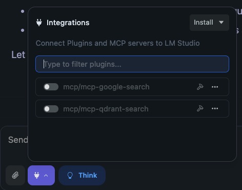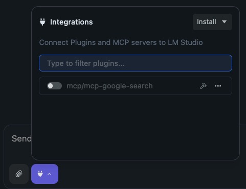 In LM Studio, in the Chat interface area, click on the plug icon, then the drop-down that says "Install", then "Edit mcp.json":